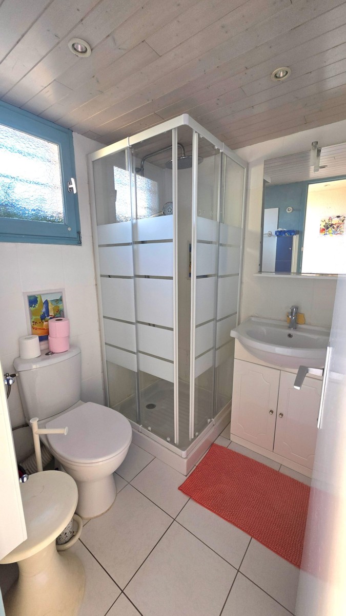 Cette location de vacances, lumineuse, exposée plein sud, équipée pour 4 personnes, possède une mezzanine basse. Elle vous offrira, durant votre séjour, tout le confort souhaité et attendu : un matelas neuf 140×190, canapé BZ haute densité, volets roulants, TV LED murale, ventilateur de plafond, réfrigérateur-congélateur, frigo table top, plaques à induction, micro-ondes… Elle dispose également d’un parking au pied de l’appartement.